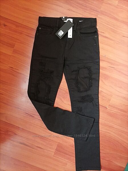 Новые с этикеткой джинсы стретч хлопок 97%,3%эластан, тянутся. Длина 88 см, полуобъем талии 34 см, полуобъем бедер 44 см, размер 152