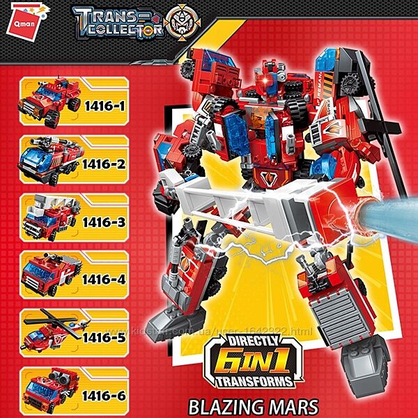Конструктор Qman 1416 "Пожарная техника 6в1 Трансформер" 500+ деталейНовая серия конструкторов 2020 года!