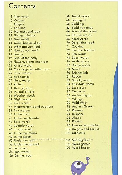 ф.1 -4 Junior Illustrated Thesaurus = 350 грн.Фантастический ресурс, который поможет детям повысить свое владение лексикой, как в письме, так и в разговорной речи. Слова и их синонимы сгруппированы по более 90 темам, к примеру, животные, звуки, сказки, профессии, спорт, монстры, погода и многое другое. Дети могут выбирать тему, соответствующую истории, или искать слово в указателе. Красочные картинки иллюстрируют многие из значений слов, а также в книге содержатся подсказки в написании, словарные игры и интернет ссылки к остальным тщательно подобранным ресурсам онлайн.