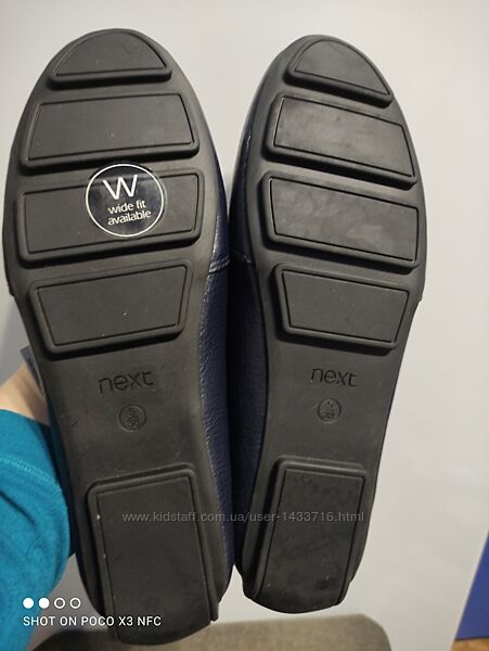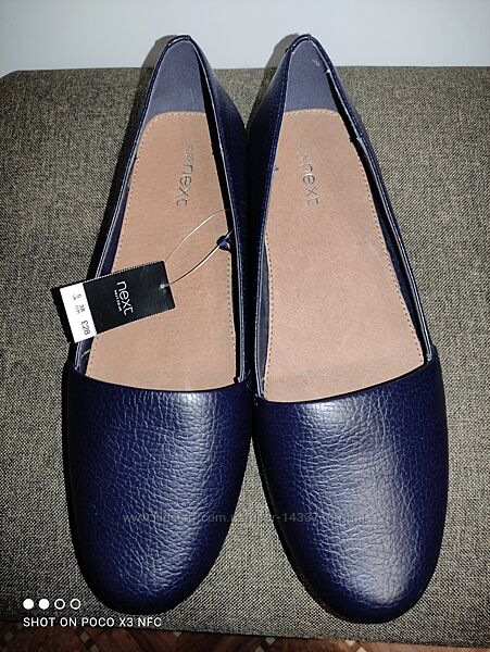Абсолютно новые мокасины, балетки Next! Темно-синий цвет. Абсолютно никаких нюансов - новая, качественная обувь.Размер указан 38, полная длина стельки 24 см.
