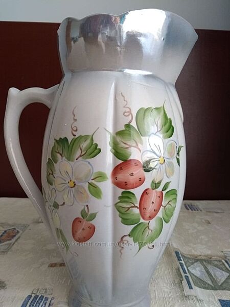 Красивый винтажный фарфоровый кувшин объем 3 литра с рисунком землянички и перламутром. Высота 32см.В пользовании не был, сервантное хранение, состояние нового.