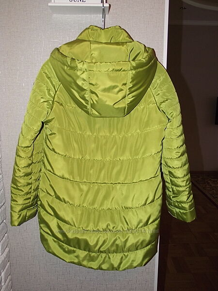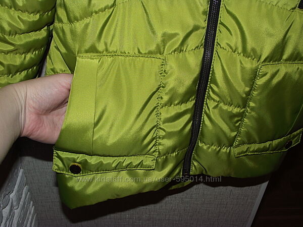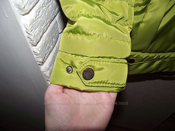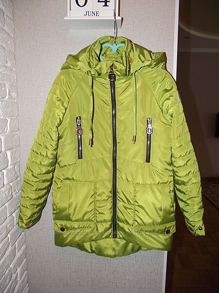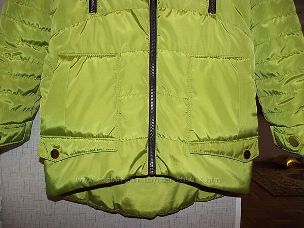Демисезонная курточка на девочку Barbarris. По бирке 128 (7 лет). Я бы сказала, что немного большемерит. В очень хорошем состоянии, в носке была один сезон, разве что заклепки золотые, если присмотреться, немного поцарапаны. Очень красивый цвет - "яблоко". Хорошее качество, аккуратно пошита.Модель очень актуальная - разная длина переда и спинки, слегка приталенный силуэт, интересное оформление.