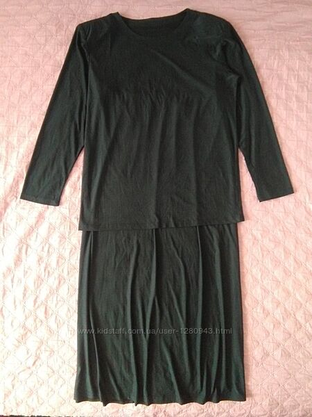 Лёгкий трикотажный костюм, размер 52/54. Длина реглана 71, плечи 47, пог 55, рукав 60. Длина юбки 103, пояс 39, в растянутом виде 58. Цвет графит. Состояние очень хорошееПредложения Premium магазинов