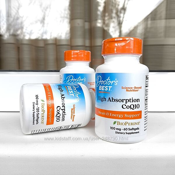 1) Коензим Q10, 100 мг, із високим ступенем засвоєння, коензим Q 10, убіхінон CoQ10, СШАDoctor ́s Best Коензим Q10 (убіхінон) з високим ступенем засвоєння, 100 мг