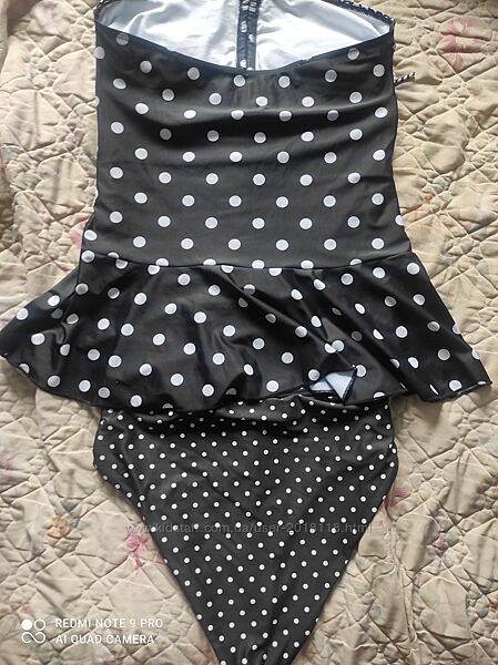 Обалденный супер купальник танкини полуплатье и плавки в бассейн или пляж. Цвет черный в белый горошек. Это распаровочка , идеально подходит друг к другу!) Верх сделан полуплатье, в груди паралоновые вставки, по бокам присобран, низ пышной юбкой, лиф на кулиске, можно затянуть/отпустить. Плавки завышенные на талию. Такой вариант купальника очень удобный, можно и скрыть объемы и в то же время спокойно загорать, просто подкатив верх. Это не просто купальник, а полноценный пляжный наряд. Супер эффектно красиво смотрится, обращает на себя внимание! Очень сильно стройнит! Отличное состояние, есть небольшие замечания по верху, мини зацепочки, плавки в идеале. На 48-52, замеры скину. Спрашивайте больше вопросов лучше 😉 всегда рада ответить 🤗 обязательно обдумать свою покупочку 👆 Пересылаю. Вопросы в личном сообщении. Смотрите также другие мои объявления! Есть много других купальников боди корсетов пеньюаров и других интересных вещей!Доставка: пересылаю Укр или Новой почтой оплата на карту Приватбанка возврата нет.