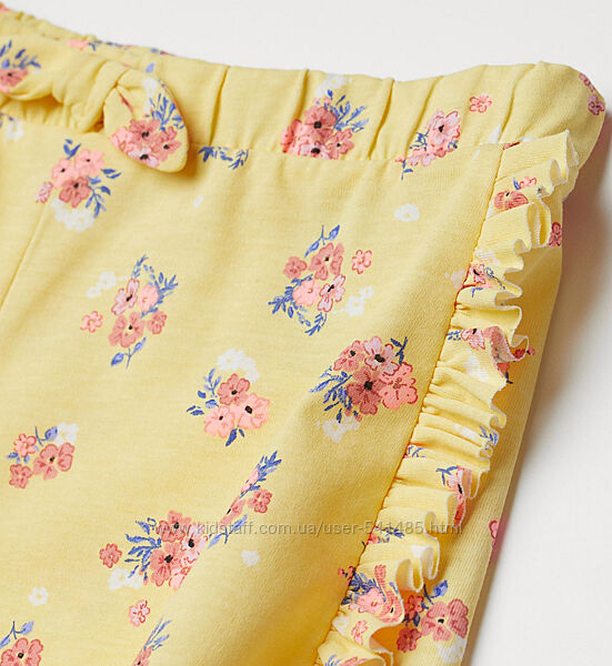 Шорты из мягкого хлопкового трикотажа. В поясе резинка, впереди декоративный бантик и боковые карманы, по бокам оборочка. Из коллекции ведущего европейского бренда H&M.Размер в наличии: