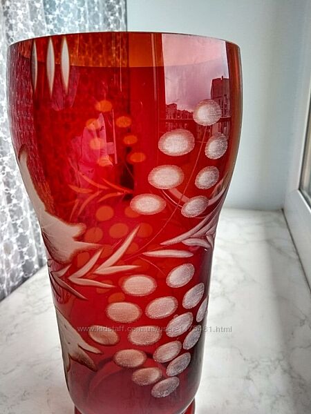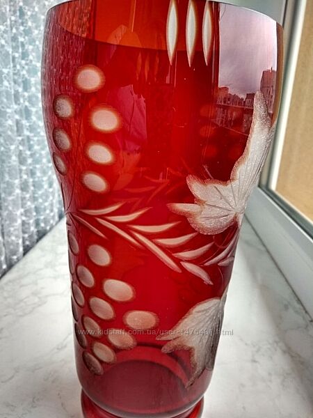 Шикарная винтажная большая ваза из красного стекла "Виноград" 60-е годы СССР. Состояние новой, в пользовании не была, сервантное хранение, без повреждений, без трещин и сколов. Размер: высота 28см., диаметр сверху 13см.Обмен и возврат не предусмотрены.