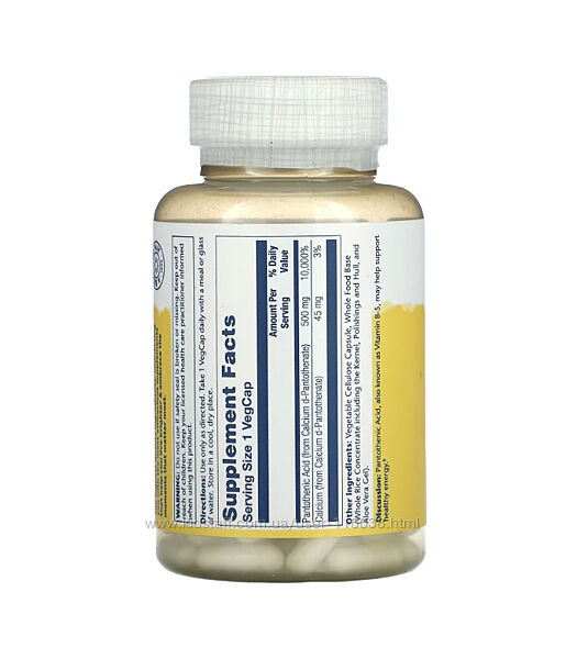 # Solaray, Пантотенова кислота, 500 мг, 100 рослинних капсулОПИС: