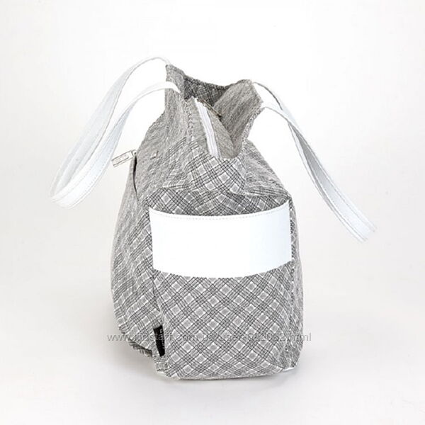 В качестве отделки применена однотонная искусственная кожа. Ткань и дно уплотнено. Сумочка держит форму. Изделие легко поддается чистке от загрязнений.