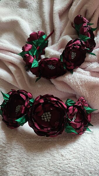 Обруч, ободок, веночек из цветов.Цвет тёмно- бордовый.