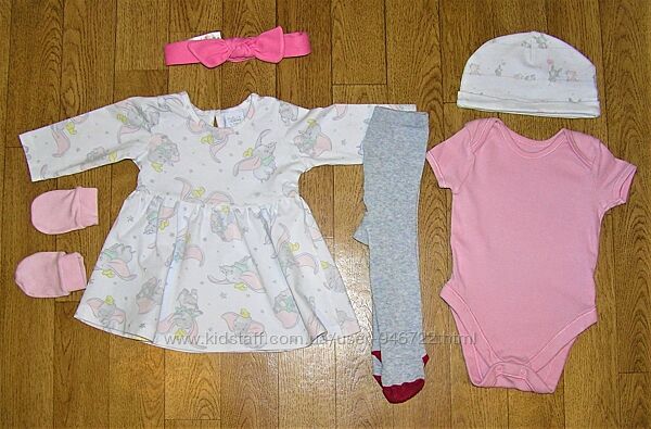 Комплект одежды из 6-ти предметов для девочки до 3-х месяцев, 6 кг, 62 см.Платье - Disney. хлопковый трикотаж.