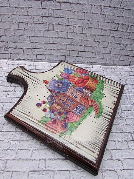 Доска из сосны, декорирована в технике обжига и браша древесины, вживления картинки.На досочке можно не только резать ,но и подавать бутерброды,фрукты,сладости и т.д.
