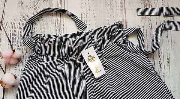 В поясе резинка. Над поясом рюша. Поясок в комплекте. Есть 2 кармана.