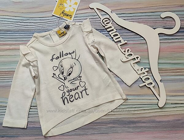 Гарний ошатний комплект для дівчинки у розмірі 6-9 міс (к7).Молочний реглан із принтом качки Tweety від італійського бренду Original Marines.