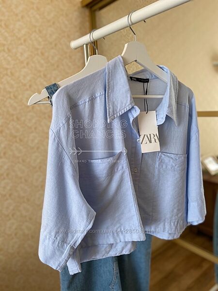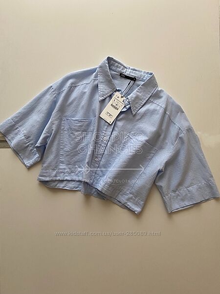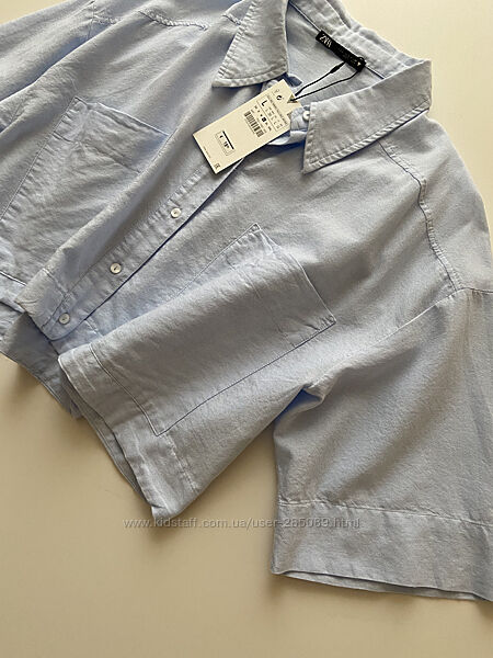 Идеальная свободная коттоновая рубашка на лето Zara!Нежный голубой цвет-отлично под джинсы, джинсовые шорты/юбку