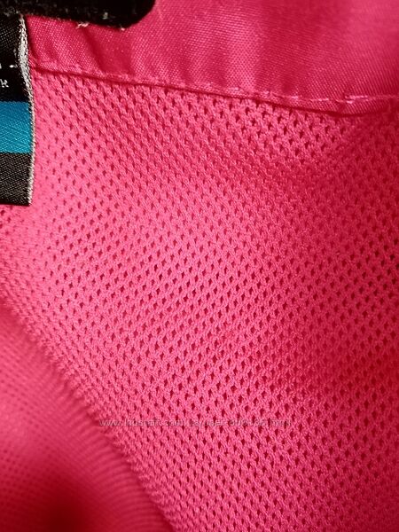 Б/У. Качественная ветровка - дождевик спортивного стиля для девочки 6-7 лет. Рост 166-122. Производитель: т.м. Куртка не промокает и не продувается. Внутри подкладка сеточка. Застёгивается на молнию + Защитная планка. Капюшон не отстежной, при желании прячется в воротник. Рукава на резинке + утяжка липучка. Впереди с правой стороны в низу есть маленькая дырочка на 0,5 см. (когда планка застёгнута её не видно). На рукавах, на резинке есть малюсенькие потёртости (см. фото). Больше ньюансов нет. Состояние по фото.Замеры: Длина по спинке 52 см. Длина рукава от шеи 57,5 см. ПОГ - 42 см. ПОБ - 41 см.