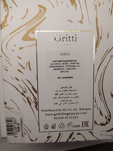 Подробное описание: Распив Gritti Adele - жасмин, майская роза, нарцисс, тубероза, амбра, кожа