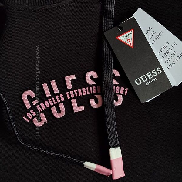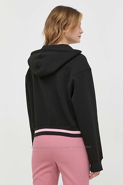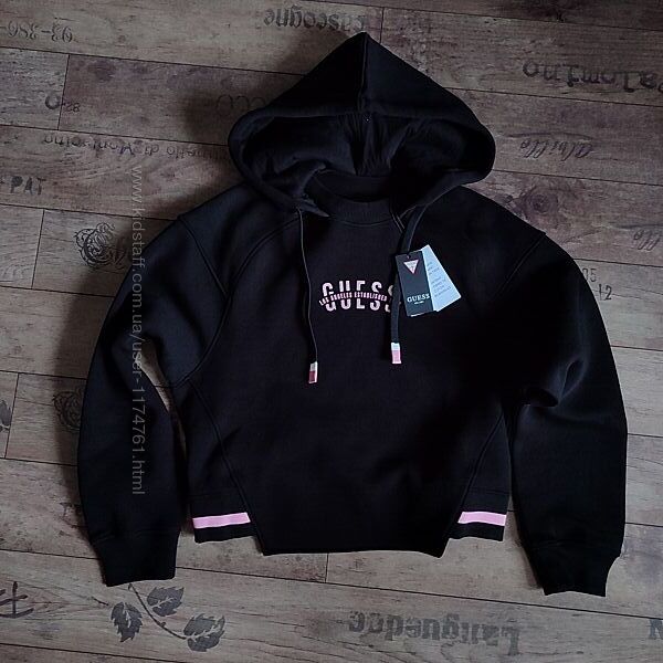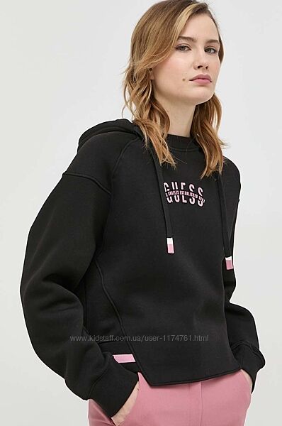 Кофта с капюшоном из коллекции Guess. Модель выполнена из эластичного трикотажа на флисе, очень теплый