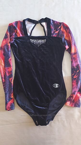 Наши купальники трико для спортивной гимнастики. Все фирменные и качественные, красиво смотрится на выступлениях. Состояние у всех отличное, все стразы на месте. Материал бархат в комбинации с эластиком. Смотрите в моих объявлениях.В данном объявлении представлен черно-красный , с длинным рукавом, на рукавах блёстки. Размер 36 приблизительно на рост 158-164, замеры : диагональ плечо промежность 64см. Длина рукава от плеча 55 см. Цена 250 грн.