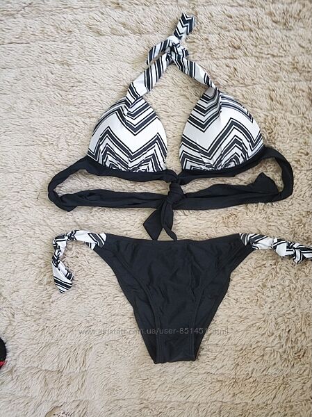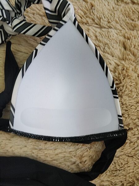 Подробное описание: Раздельный купальник треугольный верз с завязками, черно белый купальник