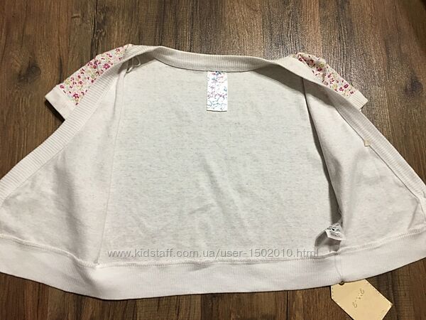 Болеро с коротким рукавом с очень нежным цветочным принтом.Производитель Турция,состав 100% хлопок,размер указан 10-12,38-40,реальные замеры:длина по спине 34см,
