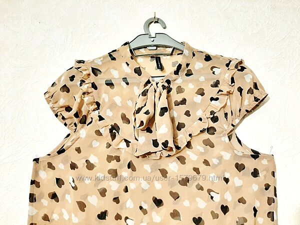 Подробное описание: Брендовая блузка кофточка шифон бежевый сердечки чёрные белые р36 NafNaf