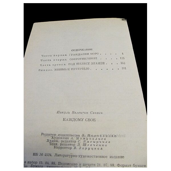 Подробное описание: Валентин Пикуль. Роман Каждому свое 1988 г