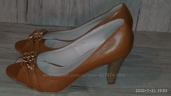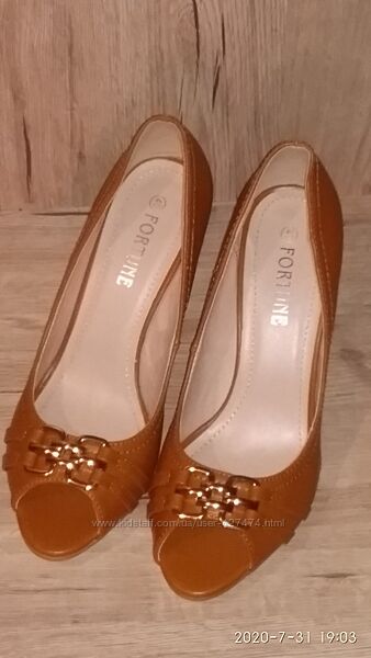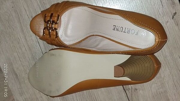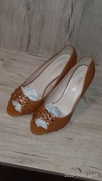Фото6-10 Туфлі нові з відкритим носочком на стійкому каблучку екошкіра. По стельці від краю до краю 25,5см.