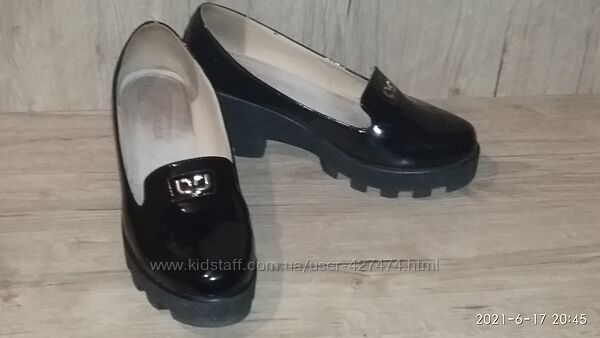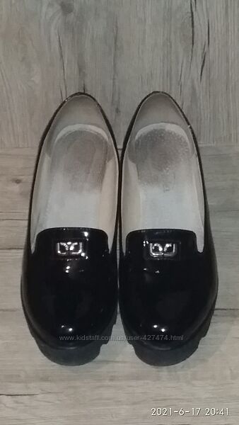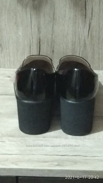 Фото1-5 Лакові туфлі на зручній тракторній платформі. Всередині шкіряна стелька. Універсальний фасон-підійдуть як на вихід так і на кожен день. вказано р.39- по стельці 25,3см.Стан ідеальний - взуті два рази ( виявились замалі).