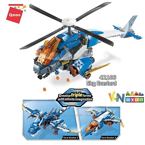 Подробное описание: Конструктор Qman 42103 Вертолет, самолет, дракон 3в1 604 деталей