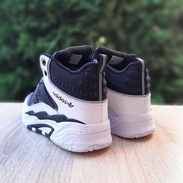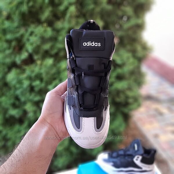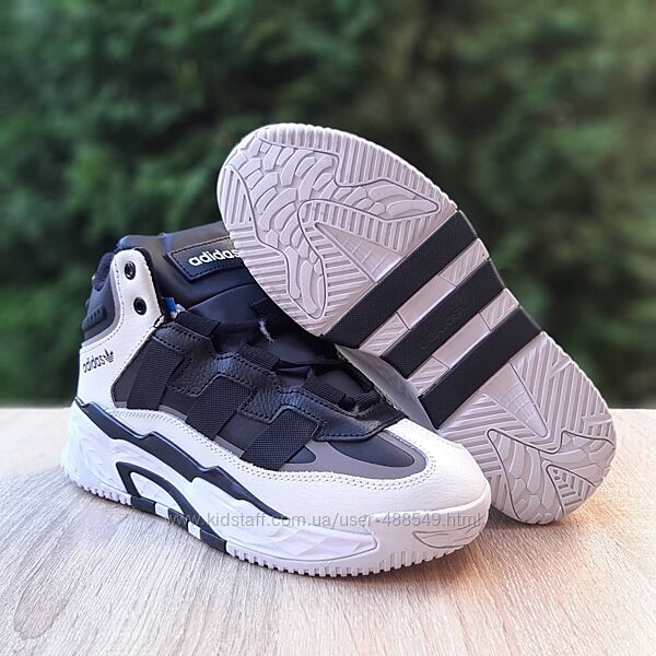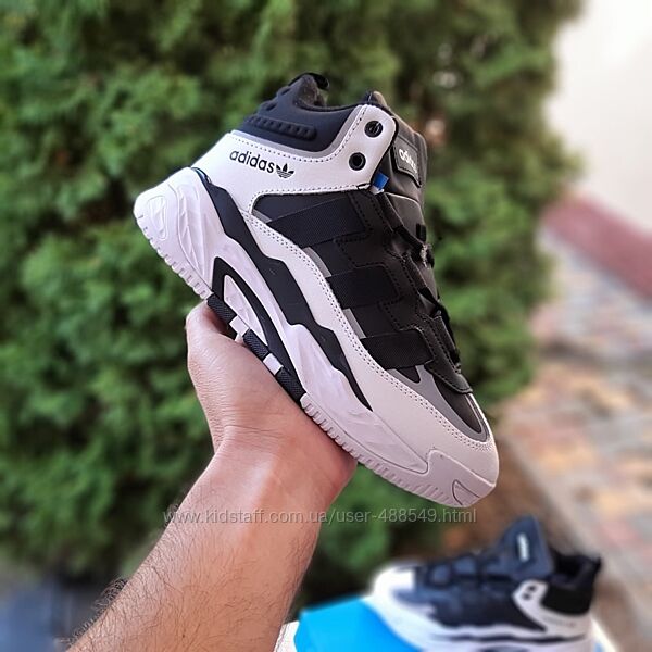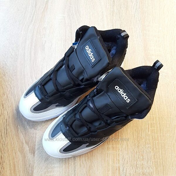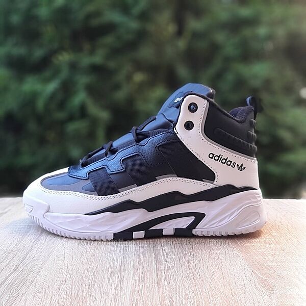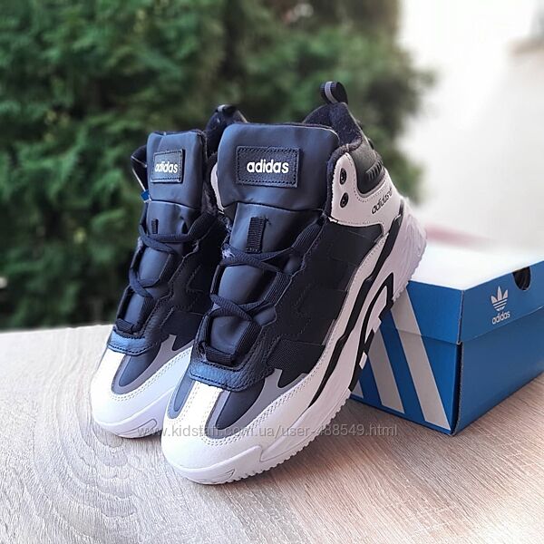 Подробное описание: Зимові кросівки з хутром Adidas Niteball високі білі з чорним шкіра