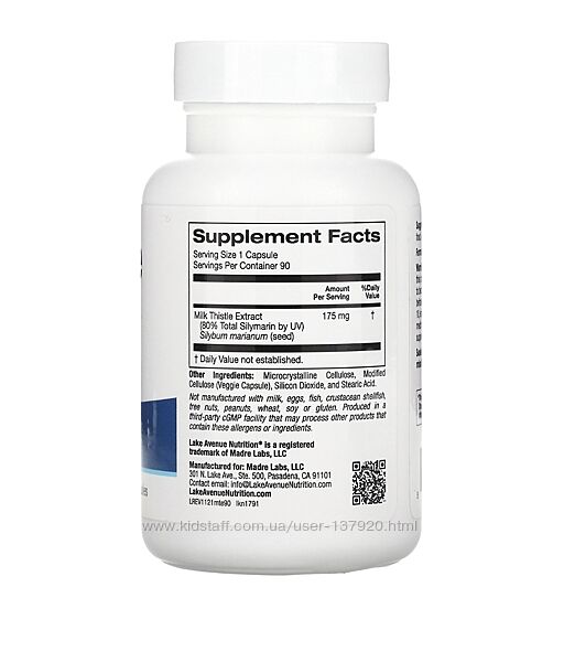ОписаниеЭкстракт расторопши от Lake Avenue NutritionСтандартизированный до 80% силимаринаПоддерживает нормальную работу печени*Не содержит ГМО, глютена и соиПроизводится на предприятии, имеющем регистрацию надлежащей производственной практики (GMP)Lake Avenue Nutrition предлагает продукты высокого качества по доступным ценам.