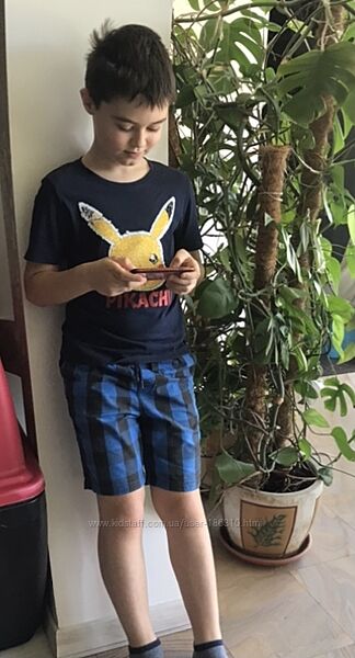 ЦЕНА одного набора/комплекта(1-а пара шорт +2-е футболки(Пикачу и Снупи)) они сформированные- см.фото 6-9):