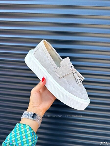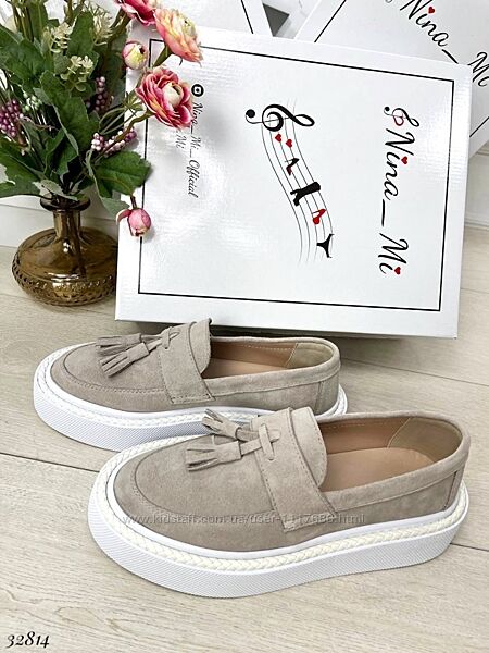 Шикарні сліпони із натуральної замші, бежеві - арт. 32814