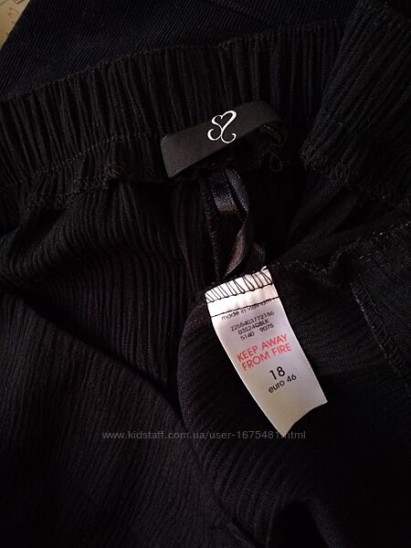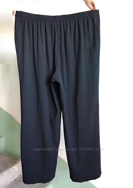 р 18 / 52-54 Черные легкие штаны брюки жатка прямые широкие с высокой талией Yours* Замеры в ровном виде и максимально потянув указаны на фото.