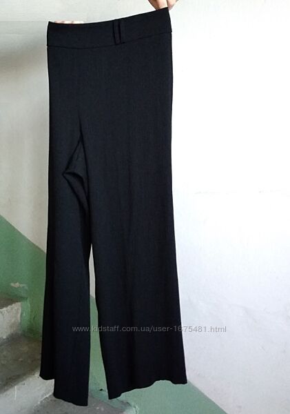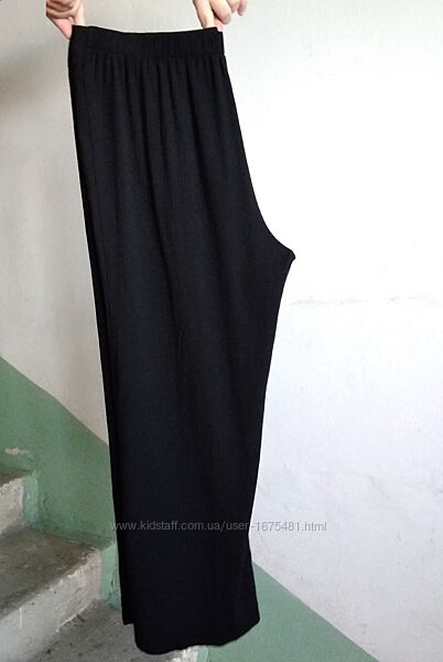 Подробное описание: р 18 / 52-54 Черные легкие штаны брюки жатка прямые широкие с высокой талие