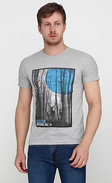 Футболка приталенного силуэта с круглым вырезом горловины, оригинальный принт.