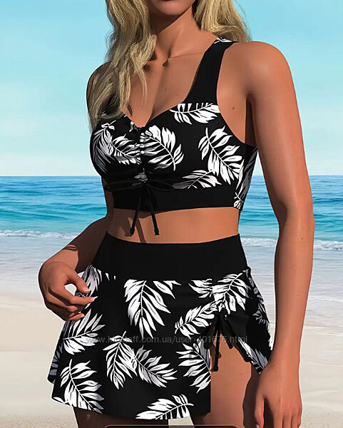 8703Красивый, раздельный женский купальник, в лиф вставляются вкладыши чашки, хорошо тянется, плавки вшивные с юбкой.