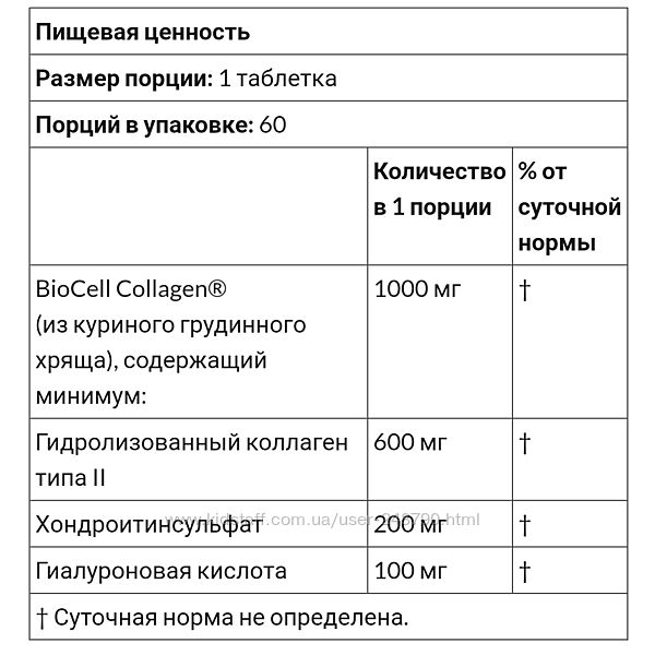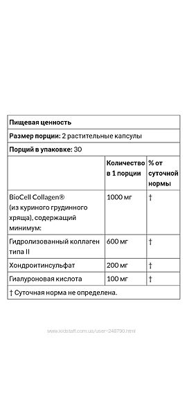 Подробное описание: Коллаген 2 типа и гиалуроновая кислота для суставов c BioCell, США