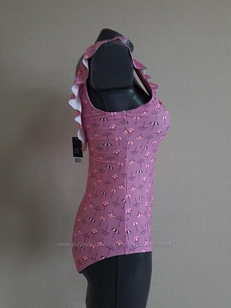 Яркий,базовый,цельный купальник с рюшей,принт зонтикиРазмер:40/12/42