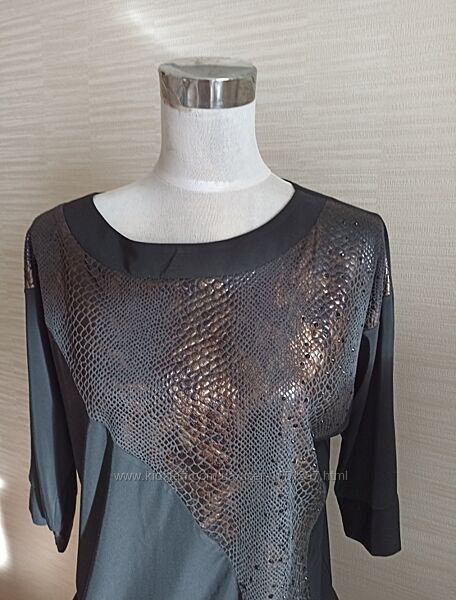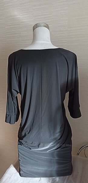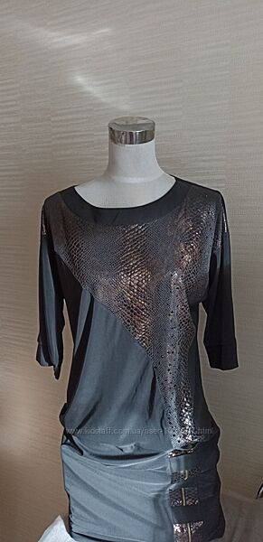Красивое стильное платье или как удлиненное туника из ткани по типу трикотина. Рукав в 3/4, вырез горловины круглый.