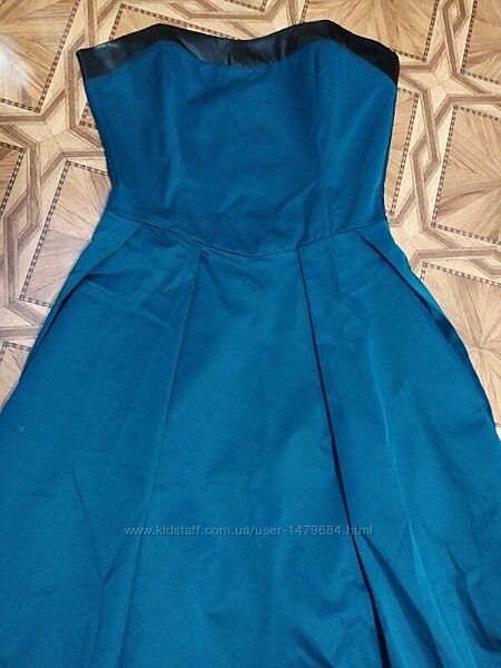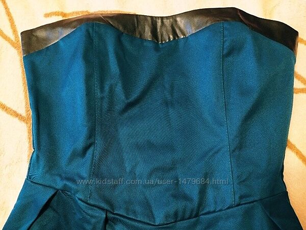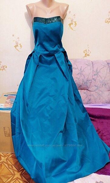 В нашем магазине грандиозная распродажа!!Смотрите др. лоты!Цены снижены!!!Невероятное, роскошное платье в пол, Van Gils, королевский атлас, плотная костюмка дополнено вставкой из эко- кожи. Болеро в наличии нет, но по желанию можно подобрать к образу болеро или накидку. Крой торжественный, в симбиозе с дорогой,тяжелой тканью смотрится богато, идеальное платье на торжественные события,любая выпускница в таком будет на высоте. Советую! Цвет - темная бирюза
