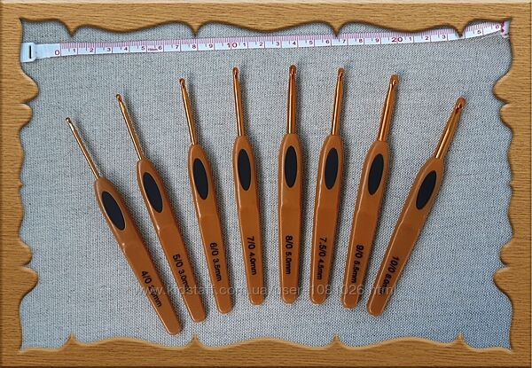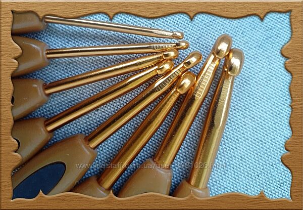 Комплект гачків для в´язанняДаний набір складається із 8 гачків різного розміру для рукодільниць, які працюють вправно з тонкими ниточками для створення мережива та ажурних виробів так із об´ємними пряжами для шарфів пледів та ковриків.матеріал гачка алюміній.