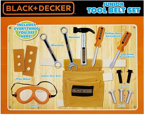 Только оригинальный товар!Набор для юных строителей Black and Decker Jr. 14-Piece Tool Belt Set .