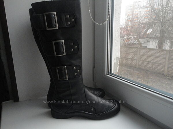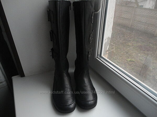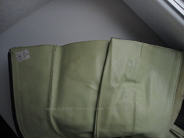Демисезонные сапоги от бренда Zoo.Состояние отличное.Раз.производителем указан 37.Длина по стельке 24 см.Высота голенища от стельки ок.35 см.Высота сапога от пола ок.38 см.Окружность голенища вверху 34 см окружность регулируется ремешками на застежке,.Материал верха мягкая нат.кожа.Внутри мягкая нат.кожа салатового цвета.Верх стельки из нат.кожи.С внутренней стороны сапога-застежка-молния.Резиновая подошва.