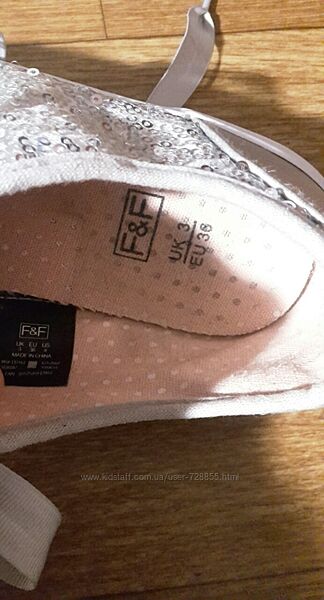 Подробное описание: Серебристые кеды, кроссовки, мокасины, балетки F&F. 36-размер. 23 см.