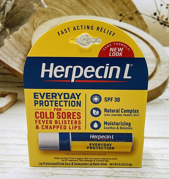 Справжнє полегшення для ваших губ. Допомагає лікувати, захищати та знімати – герпес, пухирі від сонця та спеки, потріскані губи. Збагачений лізином, вітамінами B6, C та E, лимонним бальзамом з додатковим захистом SPF 30. Herpecin L – це відповідь на сухі потріскані губи, герпес, пухирі від сонця та лихоманки. Він не восковий, тому його легко наносити, і він обіцяє швидко позбутися герпесу та пухирів.