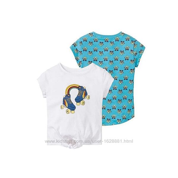 Размер 10-12 лет (146/152 см): длина по спинке белая 47 см (голубая 54), плечи 33 см, длина рукава 9 см, ширина между подмышками белой 39 см (голубой 40 см), ширина внизу белой футболки 38 см (голубой 43 см).