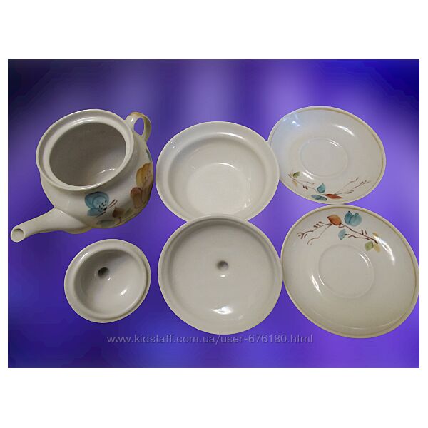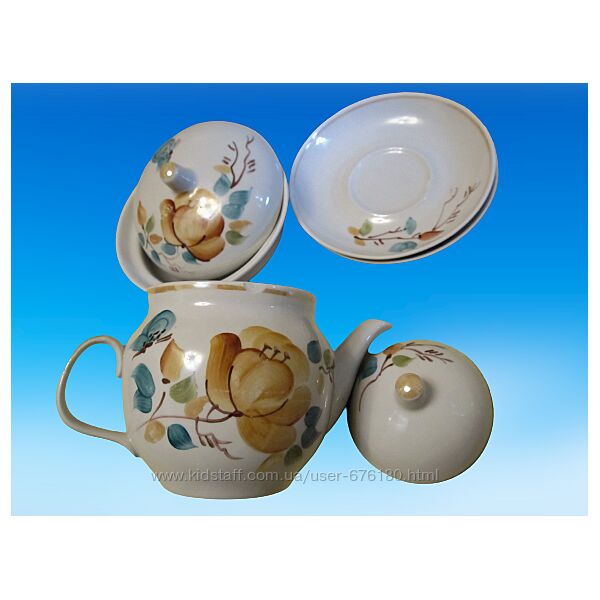 Фарфоровый чайный набор чайник масленка 2 блюдца Полонное ручная роспись