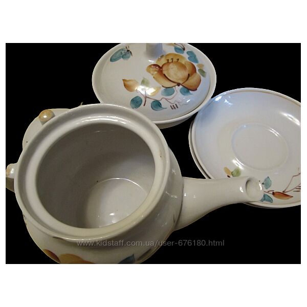 Чайный набор с национальным колоритом, состоящий из чайника-заварника , масленки/сахарницы с крышкой, 2 блюдца. Производство Полонского завода художественной керамики 1990-е 2000-е гг. Классическая форма,глазурь,ручная роспись.На изделии есть клеймо. Размер: высота чайника с крышечкой - 14 см, объем - 0,5 л масленка в диаметре 12 см, высота с крышкой - 9 см блюдца диаметром 13 см Состояние: имеются следы пользования и времени,потертости,маленькие сколы Цена указана за набор. Обмена и возврата нет! Смотрите все мои объявления! Доставка:Новой почтой,Укрпочтой за счет покупателя Оплата: 100% на карт-счет